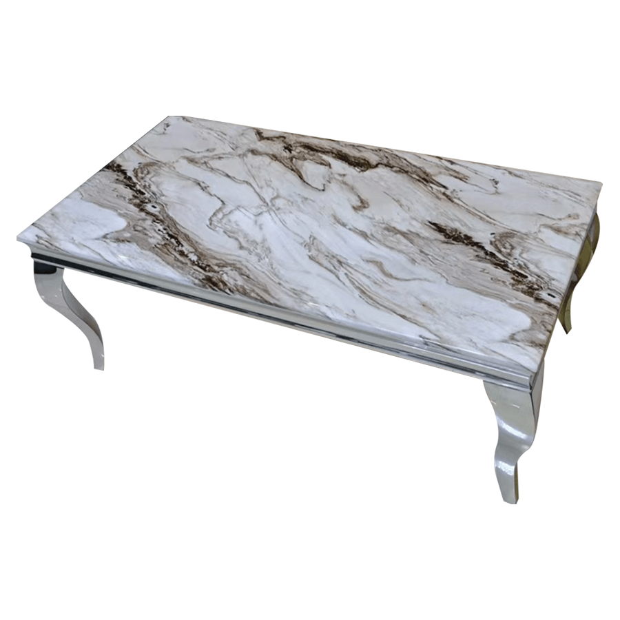 Lengkapi ruangan anda dengan Coffee Table seri CASSANDRA CT BROWN SILVER dari Importa dengan ukuran P: 120 L: 60 T: 45 yang berbahan Marmer Sintetis membuat tampilan meja ini tampak mewah dan elegan. Kaki meja yang terbuat dari Stainless Steel membuat meja ini anti rayap, anti jamur, kokoh dan tahan lama.