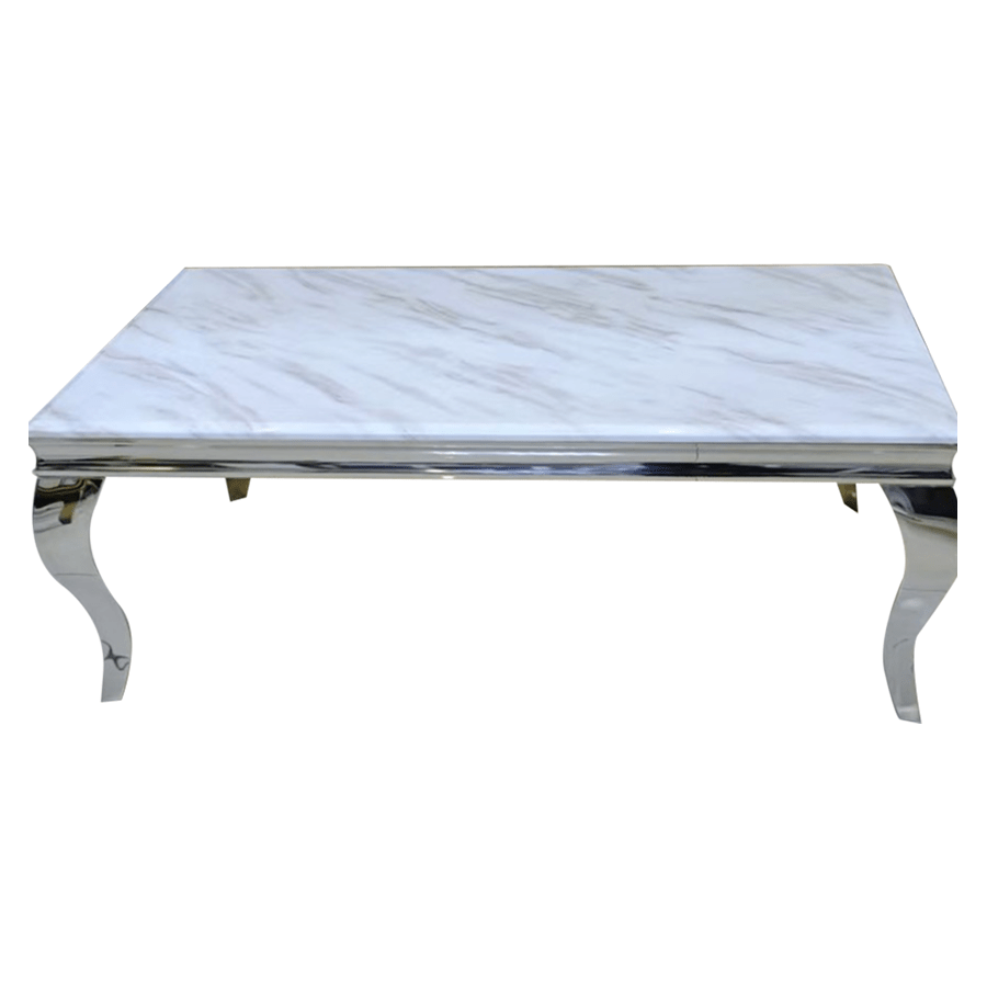 Lengkapi ruangan anda dengan Coffee Table seri CASSANDRA CT WHITE SILVER dari Importa dengan ukuran P: 120 L: 60 T: 45 yang berbahan Marmer Sintetis membuat tampilan meja ini tampak mewah dan elegan. Kaki meja yang terbuat dari Stainless Steel membuat meja ini anti rayap, anti jamur, kokoh dan tahan lama.