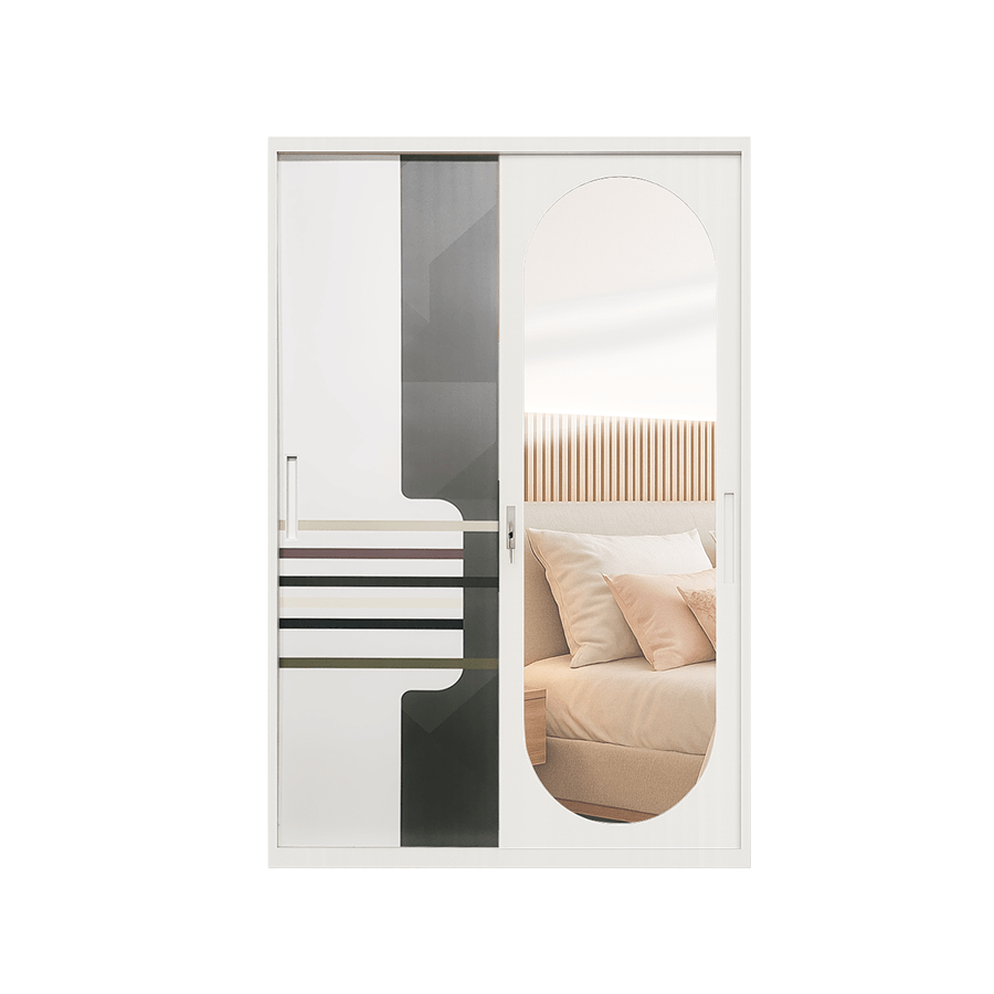 Lemari pakaian dengan bahan plat besi seri IMP BTS S03 C18 FM OVAL MIRROR yang berukuran P: 118 L: 50 T: 185. Dengan 2 pintu geser, serta beberapa keunggulan di antaranya adalah fitur Thailand Cyber Lock dengan microban 99% anti bakteri, memiliki sebuah cermin berbentuk oval disalah satu pintunya. Material berbahan besi membuat produk Anti Rayap, Anti Jamur, serta Awet & Tahan Lama.