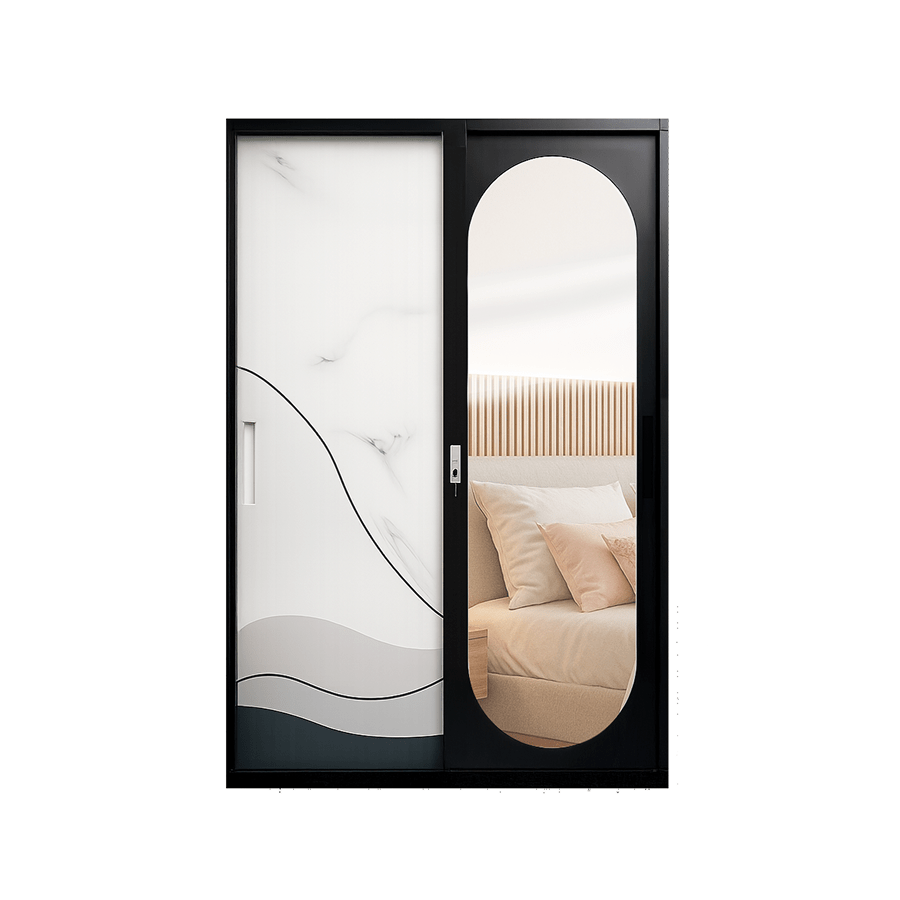 Lemari pakaian dengan bahan plat besi seri IMP BTS S03 C31 FM OVAL MIRROR yang berukuran P: 118 L: 50 T: 185. Dengan 2 pintu geser, serta beberapa keunggulan di antaranya adalah fitur Thailand Cyber Lock dengan microban 99% anti bakteri, memiliki sebuah cermin berbentuk oval disalah satu pintunya. Material berbahan besi membuat produk Anti Rayap, Anti Jamur, serta Awet & Tahan Lama.