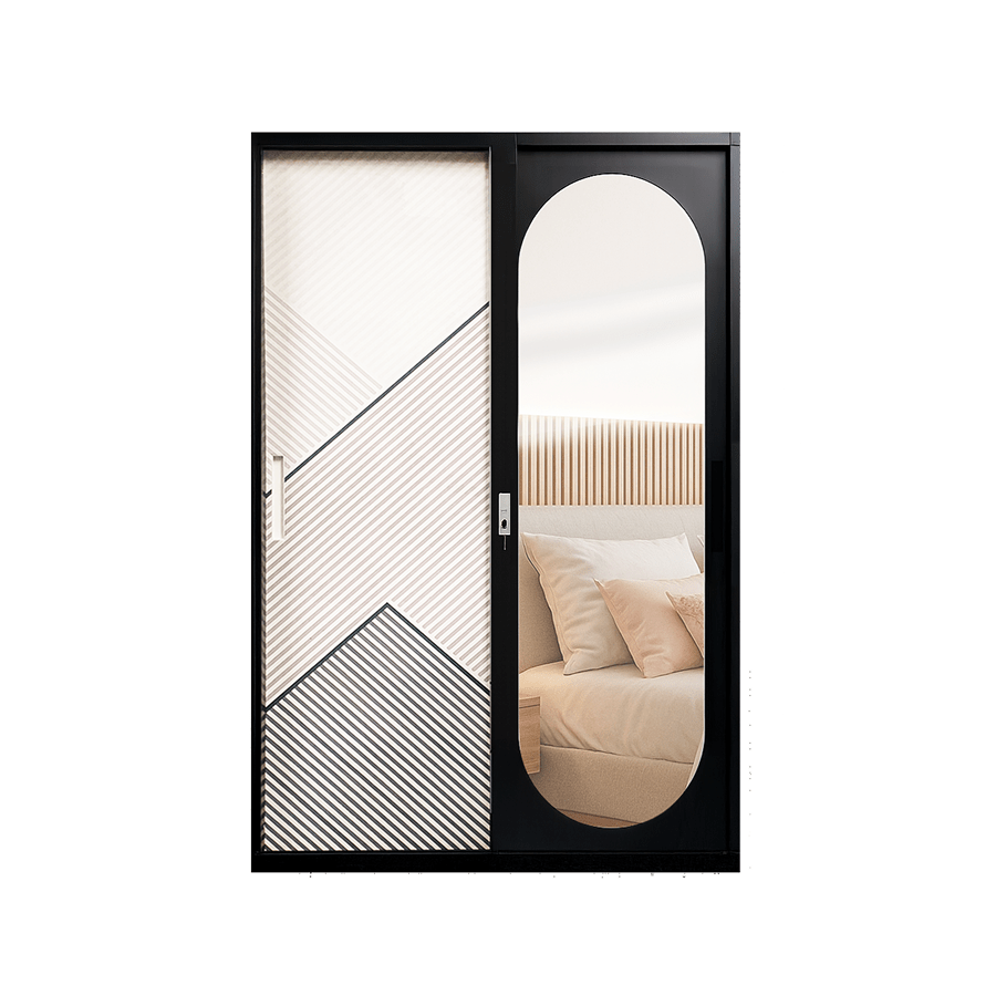 Lemari pakaian dengan bahan plat besi seri IMP BTS S03 C33 FM OVAL MIRROR yang berukuran P: 118 L: 50 T: 185. Dengan 2 pintu geser, serta beberapa keunggulan di antaranya adalah fitur Thailand Cyber Lock dengan microban 99% anti bakteri, memiliki sebuah cermin berbentuk oval disalah satu pintunya. Material berbahan besi membuat produk Anti Rayap, Anti Jamur, serta Awet & Tahan Lama.