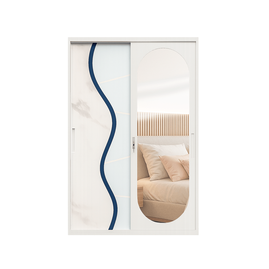Lemari pakaian dengan bahan plat besi seri IMP BTS S03 C37 FM OVAL MIRROR yang berukuran P: 118 L: 50 T: 185. Dengan 2 pintu geser, serta beberapa keunggulan di antaranya adalah fitur Thailand Cyber Lock dengan microban 99% anti bakteri, memiliki sebuah cermin berbentuk oval disalah satu pintunya. Material berbahan besi membuat produk Anti Rayap, Anti Jamur, serta Awet & Tahan Lama.