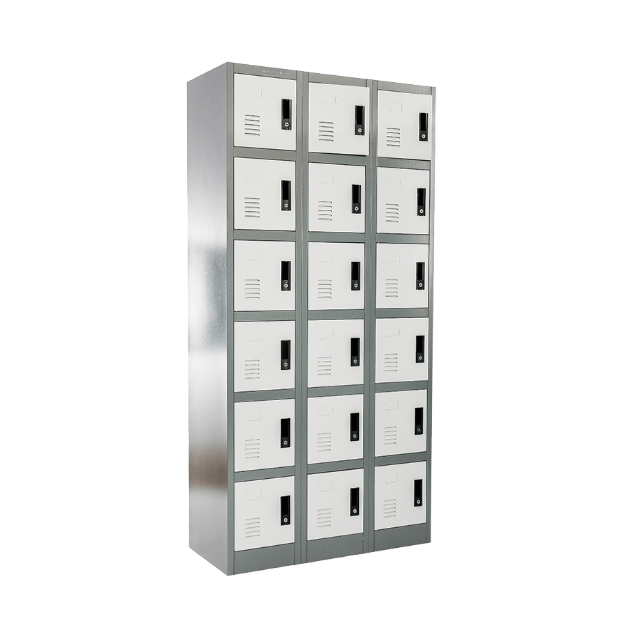 Lemari penyimpanan (Locker) ukuran P: 85 L: 40 T: 185 berbahan besi 18 rak, masing – masing memiliki pintu ayun yang di lengkapi kunci pengaman di setiap pintu. Material berbahan besi membuat produk Anti Rayap, Anti Jamur, Awet & Tahan Lama, dilengkapi dengan Orange Peel Texture yang berguna untuk anti gores, serta terdapat sirkulasi udara untuk menjaga agar dokumen tidak lembab.