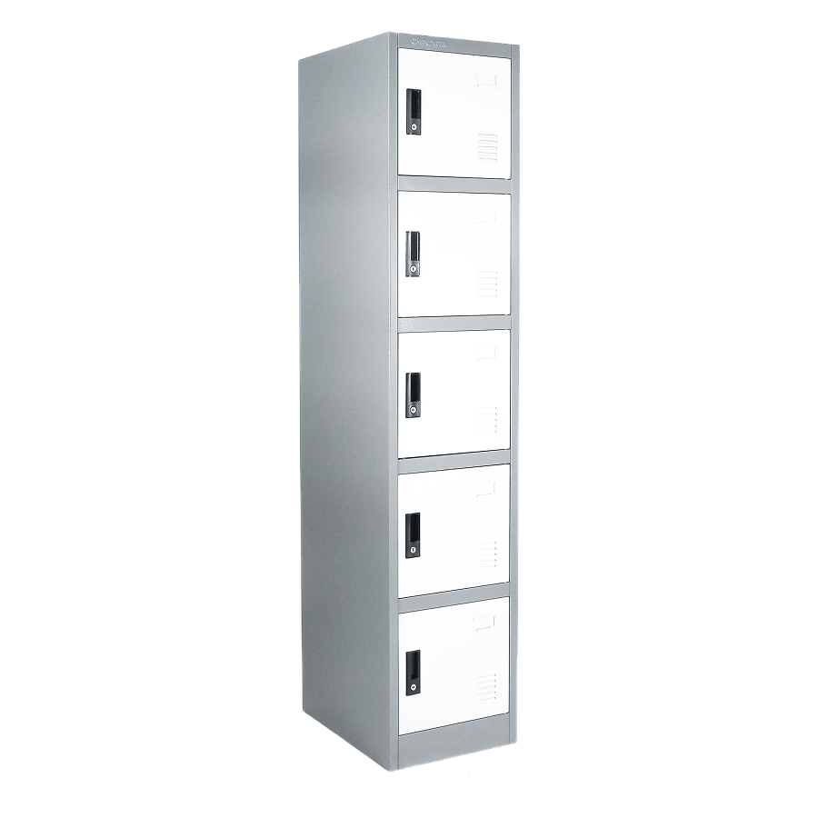 Lemari penyimpanan (Locker) ukuran P: 38 L: 50 T: 185 berbahan besi 5 rak, masing – masing memiliki pintu ayun yang di lengkapi kunci pengaman di setiap pintu. Material berbahan besi membuat produk Anti Rayap, Anti Jamur, Awet & Tahan Lama, dilengkapi dengan Orange Peel Texture yang berguna untuk anti gores, serta terdapat sirkulasi udara untuk menjaga agar dokumen tidak lembab.