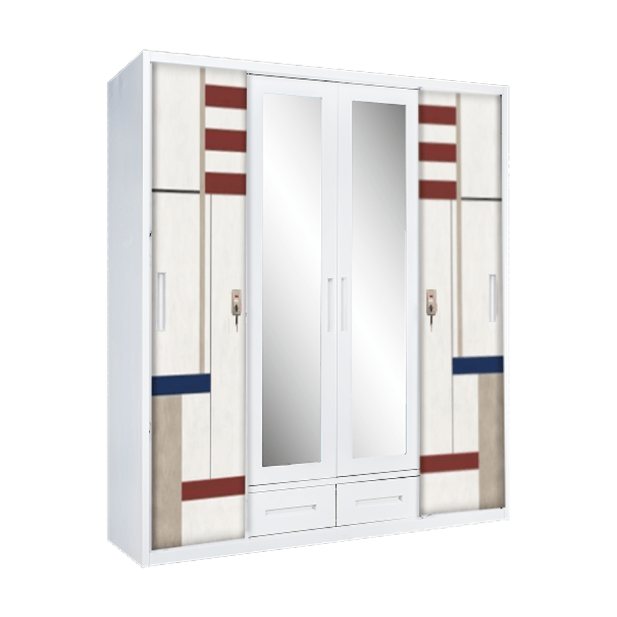 Lemari pakaian dengan bahan plat besi seri IMP M04 B53 DM yang berukuran P: 160 L: 50 T: 185. Dengan 2 pintu ayun 2 pintu geser, serta beberapa keunggulan di antaranya adalah fitur Thailand Cyber Lock dengan microban 99% anti bakteri, memiliki cermin di 2 pintu bagian tengah, serta memiliki fitur Safety Box dengan kunci sehingga memberikan 2 lapis keamanan, dilengkapi 2 laci di bagian bawah dan penyimpanan yang dapat disesuaikan dengan kebutuhan Anda. Material berbahan besi membuat produk Anti Rayap, Anti Jamur, serta Awet & Tahan Lama.