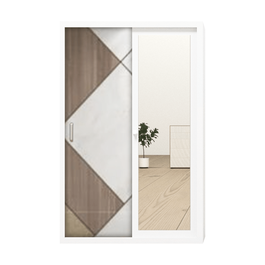 Lemari pakaian dengan bahan plat besi seri IMP S02/S03 B40 FM ukuran P: 90/118 L: 50 T: 185. Dengan 2 pintu sleding serta beberapa keunggulan di antaranya adalah fitur Thailand Cyber Lock dengan microban 99% anti bakteri, memiliki fitur Full Mirror, serta memiliki fitur Safety Box dengan kunci sehingga memberikan 2 lapis keamanan. Material berbahan besi membuat produk Anti Rayap, Anti Jamur, serta Awet & Tahan Lama.