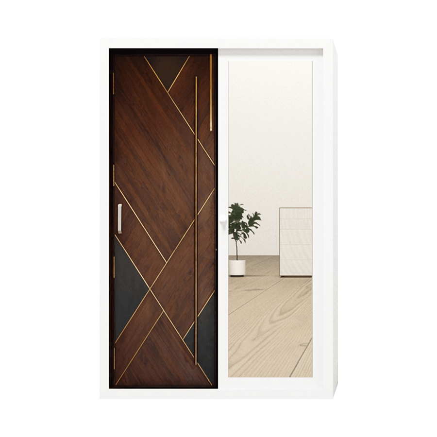 Lemari pakaian dengan bahan plat besi seri IMP S02/S03 B45 FM ukuran P: 90/118 L: 50 T: 185. Dengan 2 pintu sleding serta beberapa keunggulan di antaranya adalah fitur Thailand Cyber Lock dengan microban 99% anti bakteri, memiliki fitur Full Mirror, serta memiliki fitur Safety Box dengan kunci sehingga memberikan 2 lapis keamanan. Material berbahan besi membuat produk Anti Rayap, Anti Jamur, serta Awet & Tahan Lama.