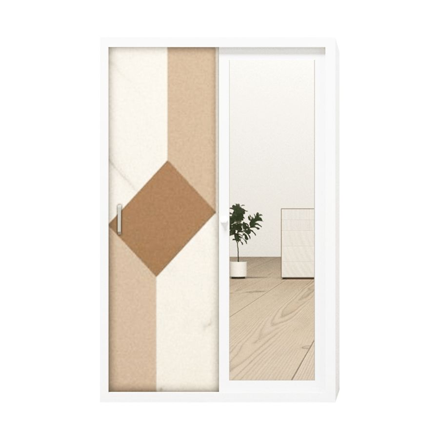 Lemari pakaian dengan bahan plat besi seri IMP S02/S03 B55 FM ukuran P: 90/118 L: 50 T: 185. Dengan 2 pintu sleding serta beberapa keunggulan di antaranya adalah fitur Thailand Cyber Lock dengan microban 99% anti bakteri, memiliki fitur Full Mirror, serta memiliki fitur Safety Box dengan kunci sehingga memberikan 2 lapis keamanan. Material berbahan besi membuat produk Anti Rayap, Anti Jamur, serta Awet & Tahan Lama.