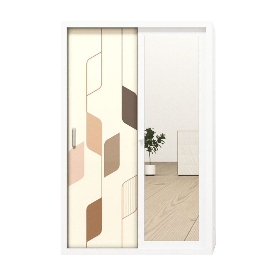 Lemari pakaian dengan bahan plat besi seri IMP S02/S03 B63 FM ukuran P: 90/118 L: 50 T: 185. Dengan 2 pintu sleding serta beberapa keunggulan di antaranya adalah fitur Thailand Cyber Lock dengan microban 99% anti bakteri, memiliki fitur Full Mirror, serta memiliki fitur Safety Box dengan kunci sehingga memberikan 2 lapis keamanan. Material berbahan besi membuat produk Anti Rayap, Anti Jamur, serta Awet & Tahan Lama.