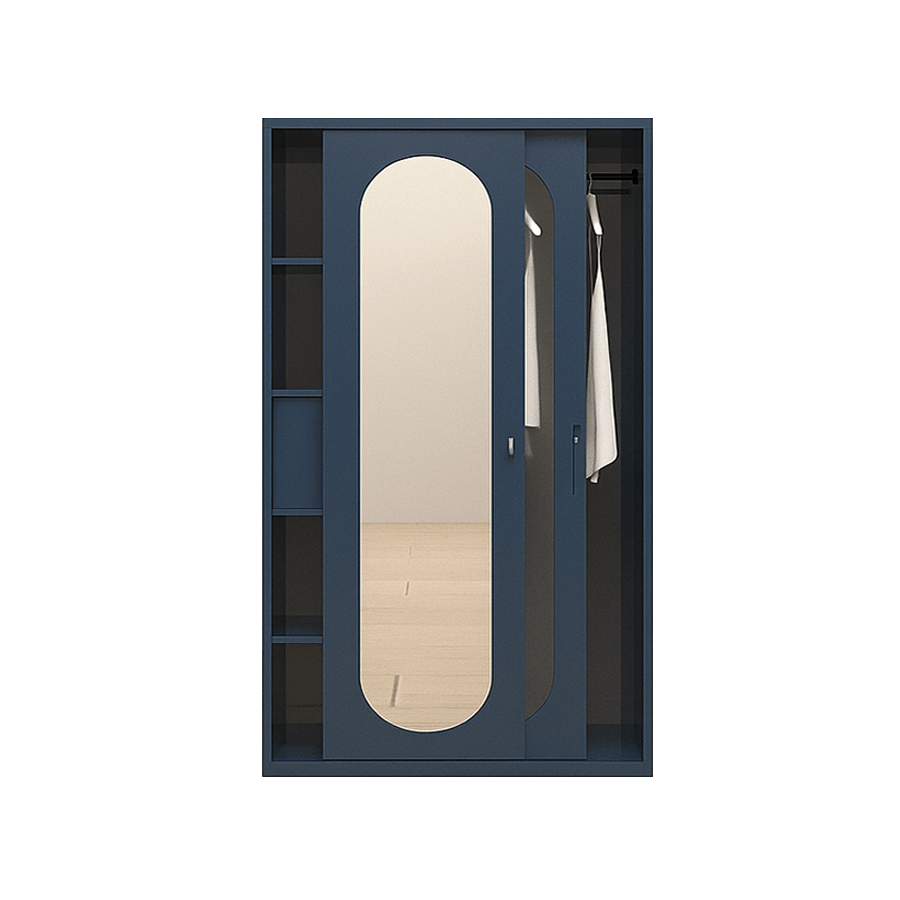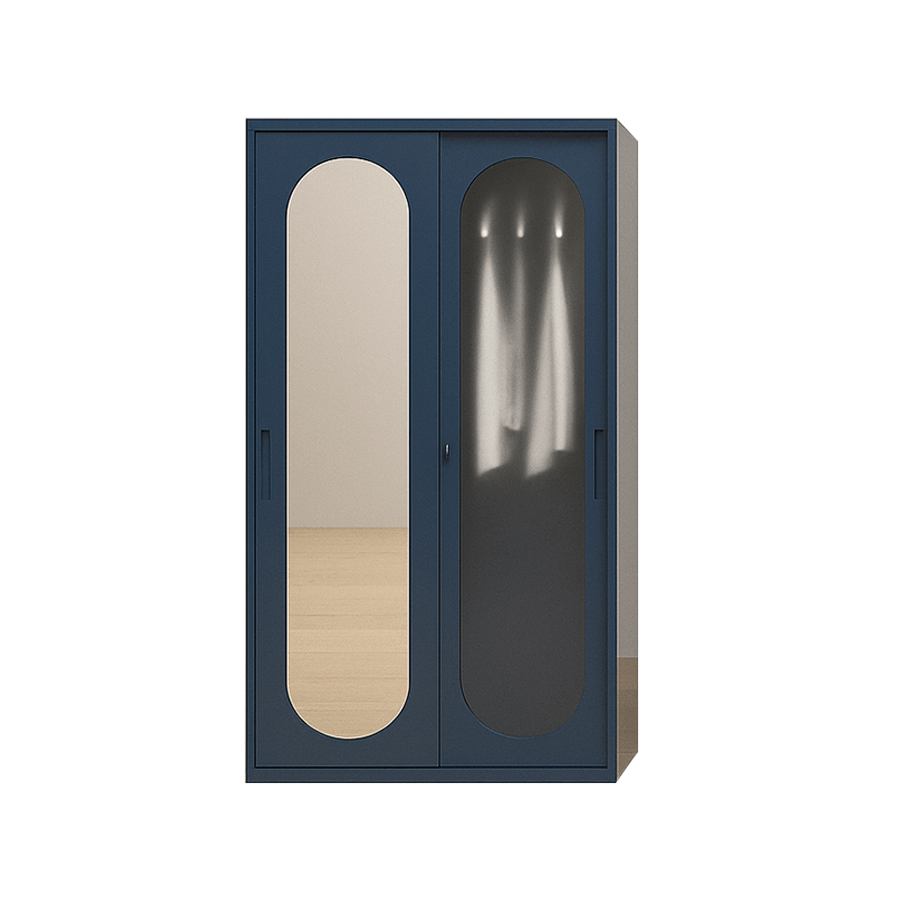 Lemari pakaian dengan bahan plat besi seri IMP S03 FMG BLUE yang berukuran P: 118 L: 50 T: 185. Dengan 2 pintu geser, serta beberapa keunggulan di antaranya adalah fitur Thailand Cyber Lock dengan microban 99% anti bakteri, memiliki sebuah cermin berbentuk oval disalah satu pintunya, serta di 1 pintu lainya memiliki kaca blur yang masih bisa melihat bagian dalam lemari dengan samar, memiliki 4 storage di bagian samping, dan hanger chrome besi yang berbahan kokoh yang kuat menahan beban berat . Material berbahan besi membuat produk Anti Rayap, Anti Jamur, serta Awet & Tahan Lama.