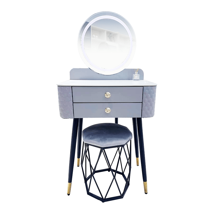 Meja Rias dengan seri JENNY DRESSING TABLE dari IMPORTA yang mempunyai detail, body & drawer berbahan MDF yang berkualitas tinggi, kokoh, dan tahan lama. Dengan kaki meja berbahan Metal yang kuat dan finishing yang halus berwarna putih. Dilengkapi Cermin LED yang bisa diubah tingkat kecerahannya sesuai dengan kebutuhan Anda. Terdapar 2 laci utama, dan disertai oleh stool/kursi sesuai dengan gambar. Meja rias tersedia pilihan warna Pink & Grey.